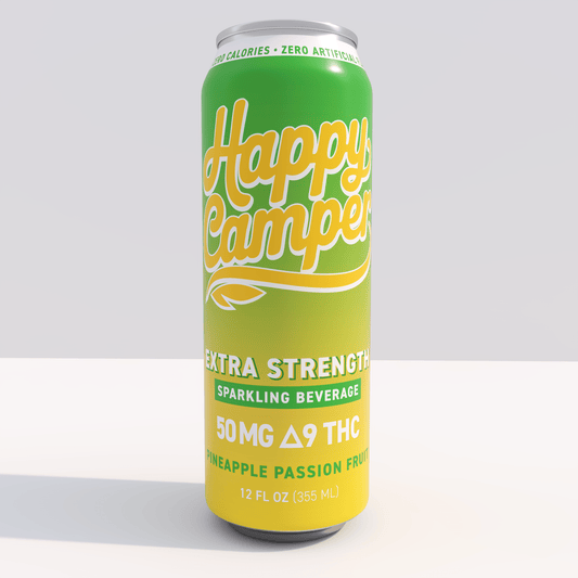 happy camper Pineapple Passion Fruit - 50mg Delta 9 THC - 355 ml Extra Strength - 12 pack