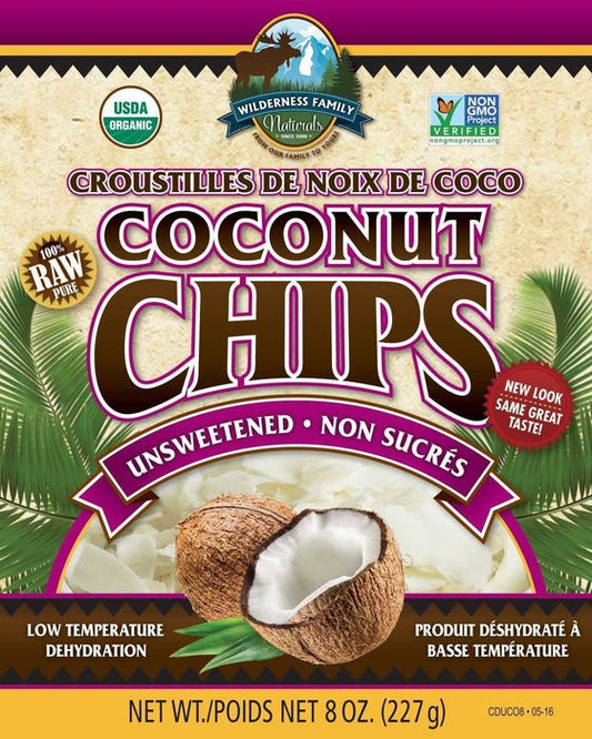 Coconut | Dehydrated at 98 degrees | unsweetened | Certified Organic | chips | 16 OZ | Case of 12