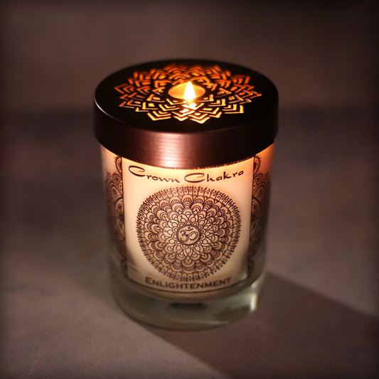 Prabhuji Crown Chakra Sahasrara | Soy Candle for Chakra Meditation Scented with Essential Oils | Lotus Flower | Enlightenment - 10.5oz