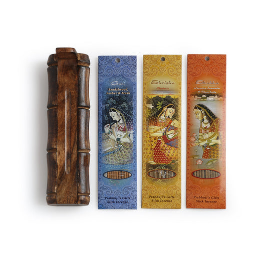 Prabhuji Incense Gift Set - Bamboo Burner + 3 Harmony Incense Sticks Packs & Love Greeting - Rest in you