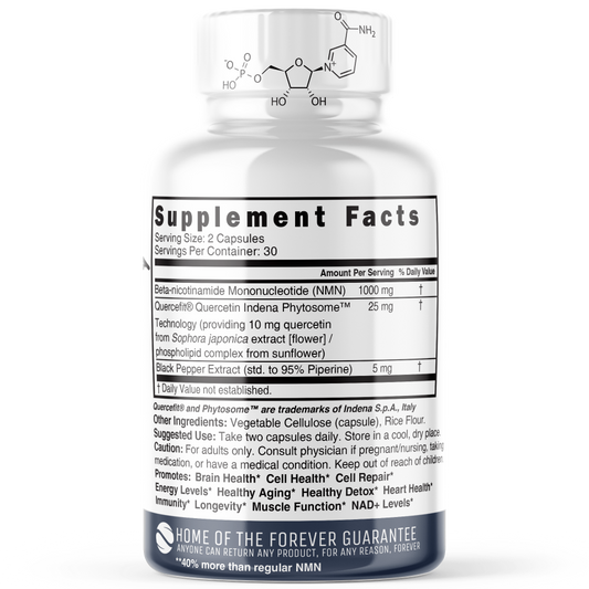NMN+ 1000 mg (NMN + Quercetin & Piperine) MAX Strength 60ct