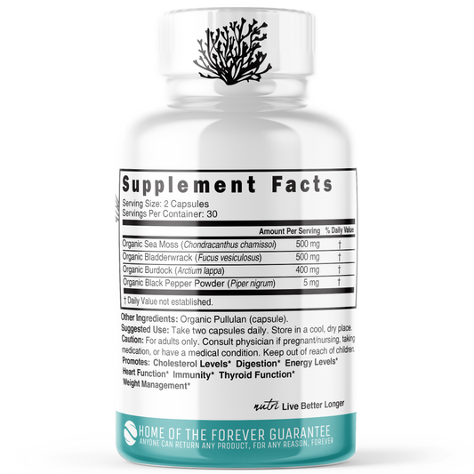 ORGANIC Sea Moss with Bladderwrack, Burdock & Black Pepper 1400mg