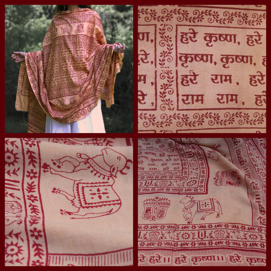 Prabhuji Meditation Yoga Prayer Shawl - Maha Mantra - Peach Large