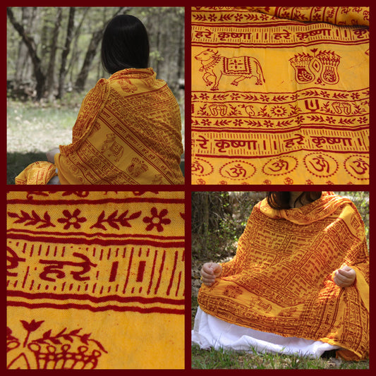 Prabhuji Meditation Yoga Prayer Shawl - Maha Mantra - Yellow Large