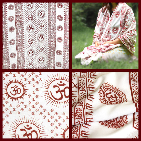 Prabhuji Meditation Yoga Prayer Shawl - Mantra Om - White Large