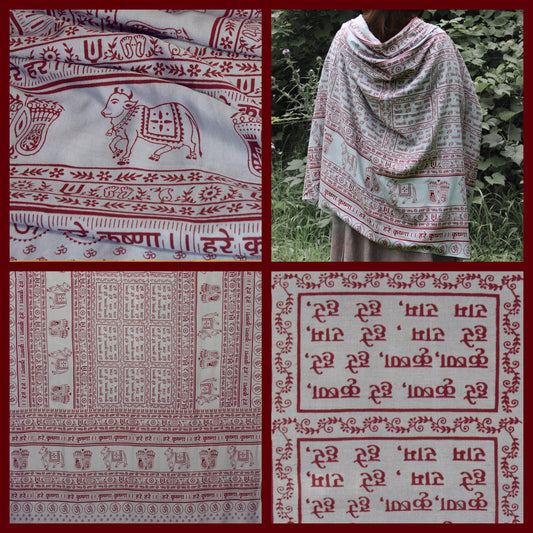 Prabhuji Meditation Yoga Prayer Shawl - Maha Mantra - White Large
