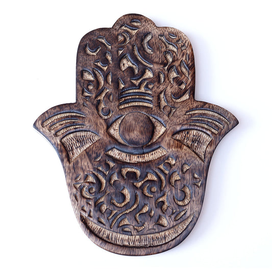 Prabhuji Decor - Wooden Hamsa - Swirl Wave 7"x6"