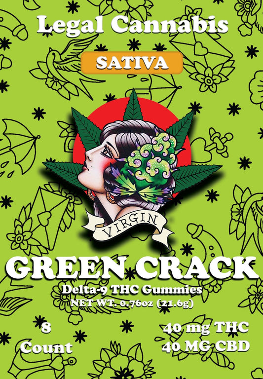 Green Crack Live Rosin 5mg D9/CBD 8 ct. Sativa (Box of 10)